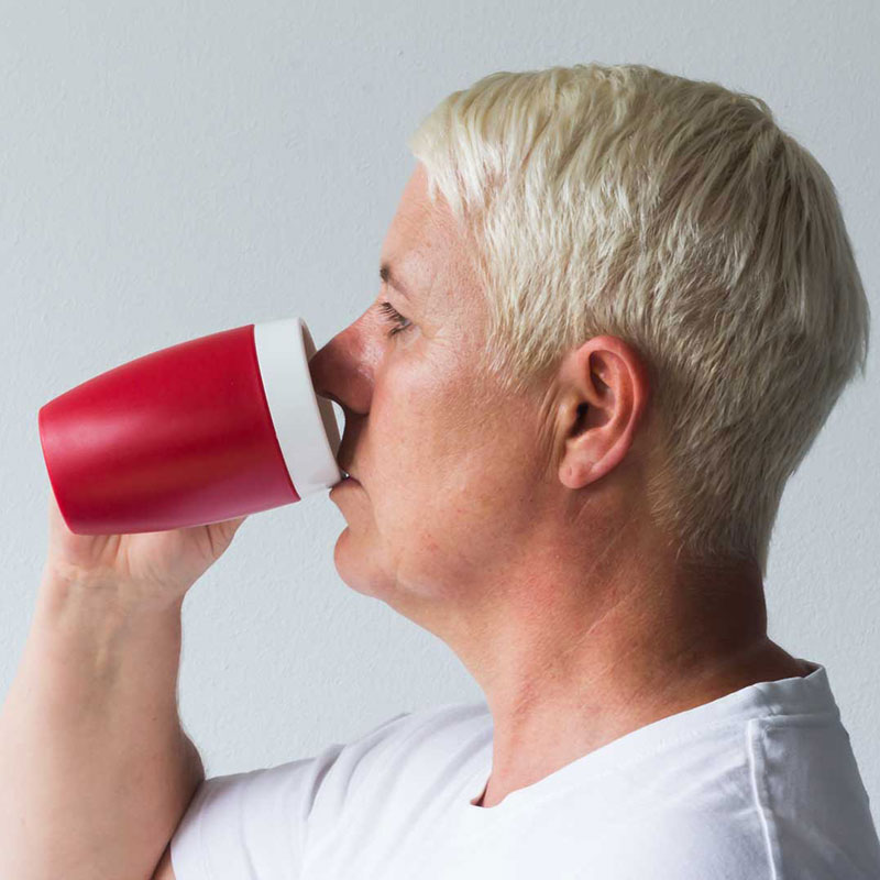 AUCH IM LIEGEN EINFACH SICHER TRINKEN Der Becher Vital macht den bisher üblichen und wenig angenehmen Nasenbecher überflüssig. Er ist intuitiv zu handhaben und wurde speziell für liegende Patienten und Personen mit Bewegungseinschränkungen der oberen Extremitäten oder des Halswirbelbereichs entwickelt. Der konisch geformte Innenbecher ermöglicht ein selbstständiges und angenehmes Trinken. Der gesamte Inhalt des Thermobechers kann leicht und vollständig geleert werden, ohne den Kopf in den Nacken legen zu müssen.Der Thermobecher hält mit der doppelten Wand kalte Getränke kühl und heiße Getränke warm. Er ermöglicht langsam trinkenden Menschen, das Getränk in jeder Geschwindigkeit zu sich nehmen zu können, ohne Qualitätsverluste in Form von Temperaturveränderungen in Kauf nehmen zu müssen und ist daher eine echte Bereicherung.Wie alle ORNAMIN Becher ist der Becher Vital in verschiedenen Farben erhältlich, bruchstabil, mikrowellengeeignet und spülmaschinenfest.Technische Daten:Höhe: 115 mmGewicht: 140 gDurchmesser: ca. 71 mmFüllmenge: 200 mlMaterial: PP (Thermoplastischer Kunststoff)