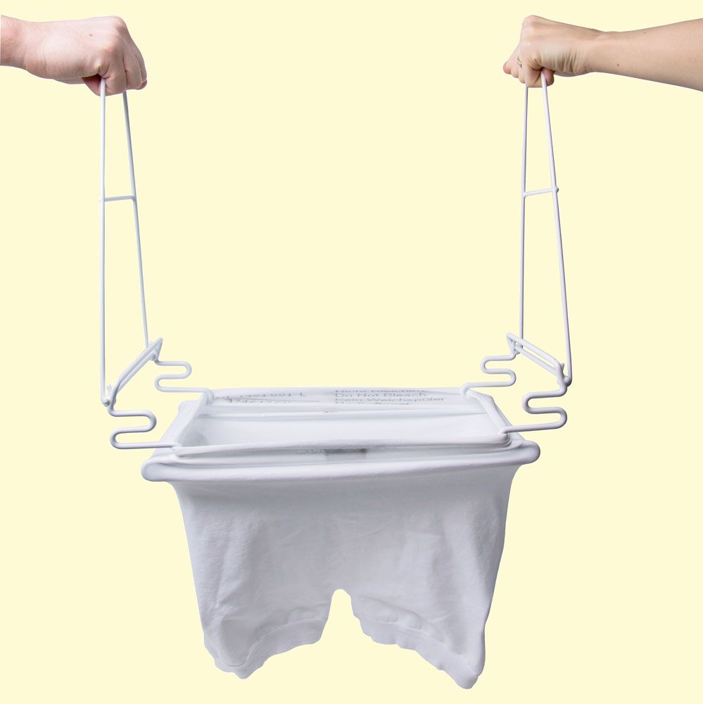Eine ideale Hilfe zum Anziehen von Unterwäsche, Slips etc., wenn die Füße nicht mehr erreicht werden können.Material:faltbares Drahtgestell, kunststoffummanteltFarbe:weißErhältlich in 2 Größen:Standard (Öffnung 34 x 18cm)Weit (Öffnung 41.5 x 20,5cm)